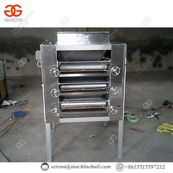 Das Material gelangt aus dem Einfülltrichter in die Walzfl?che und wird durch mehrfache Extrusion zwischen den Druckwalzen zerkleinert. Verschiedene Zerkleinerungsfeinheiten k?nnen durch Einstellen des Abstands zwischen den beiden Walzen erreicht werden. Diese Maschine hat die Vorteile einer bequemen Bedienung, eines geringen Ger?uschpegels und einer hohen Leistung und ist eine ideale Ausrüstung für die Zerkleinerung von ?ligen Materialien.