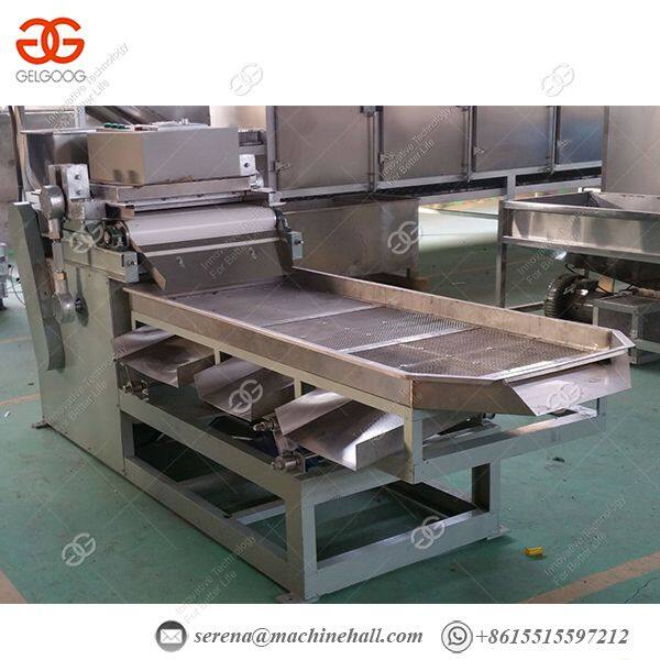 Diese Maschine ist haupts?chlich geeignet für das Hacken von Erdnusskernen und Nüssen. Sie besteht aus drei Teilen: Vibrationsbeschickung, Hacken und Klassifizierung. Die Vibrationsbeschickung kann die Erdnüsse gleichm??ig auf dem Trichter verteilen, was gut für das Hobelwerkzeug ist. Der Klassifizierungsteil verwendet Spiralzylinder mit verschiedenen Siebgr??en, um die erforderlichen Spezifikationen zu erfüllen.