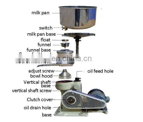 Es entfernt die Sahne aus der Milch unter Verwendung hoher rotierender Zentrifugalkraft. Und aufgrund des Dichteunterschieds der