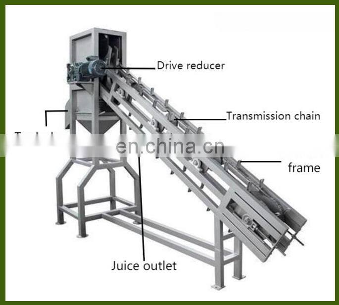 Die Maschine besteht haupts?chlich aus Gestell, F?rderkette, Safttrichter, Schlackeneimer, Rahmen, Getriebeuntersetzer und anderen wichtigen Komponenten.