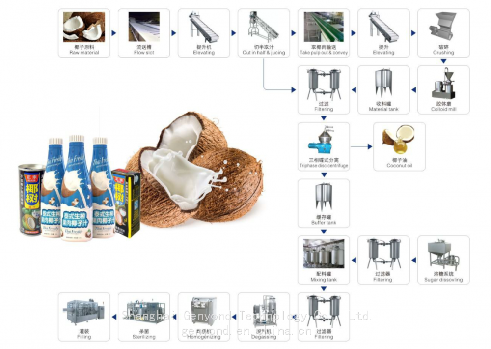 * Herstellung von Kokosnusswasser, Kokosmilch, Kokosnussfruchtsaft usw.