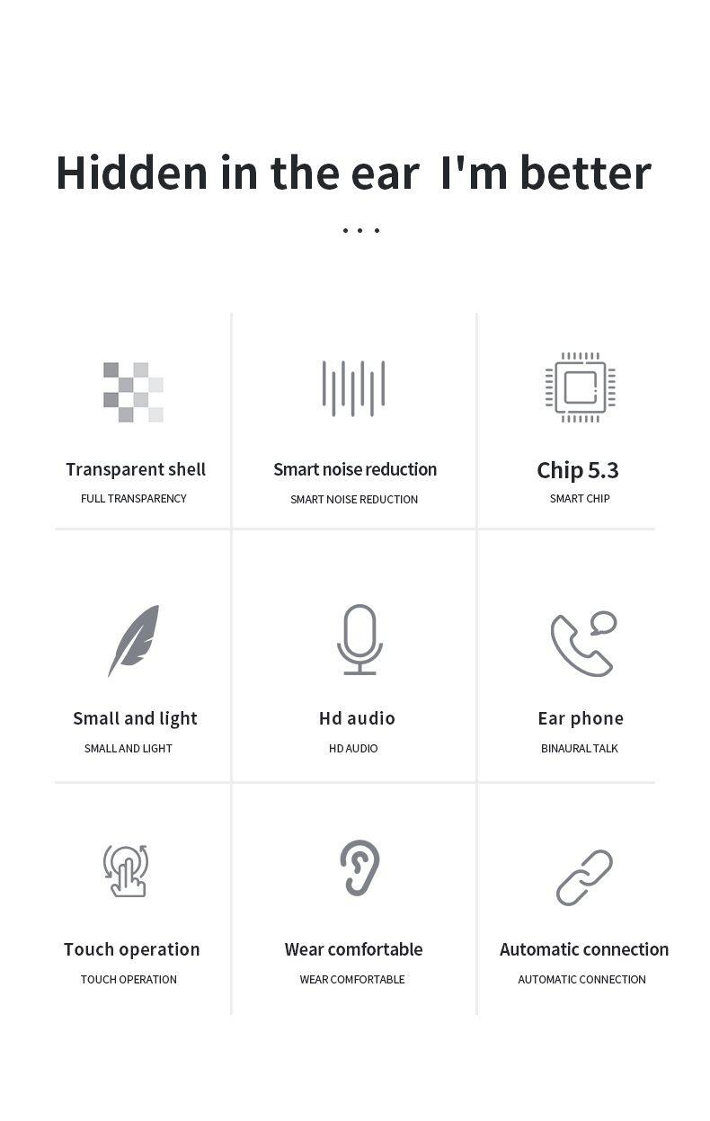 > > Andere > Transparent Bluetooth-Kopfh?rer, wirklich kabellos für Sport und Spiele, langlebige Akkulaufzeit, Android-Kompatibilit?t, geringe Latenz, Bluetooth-Ohrh?rer