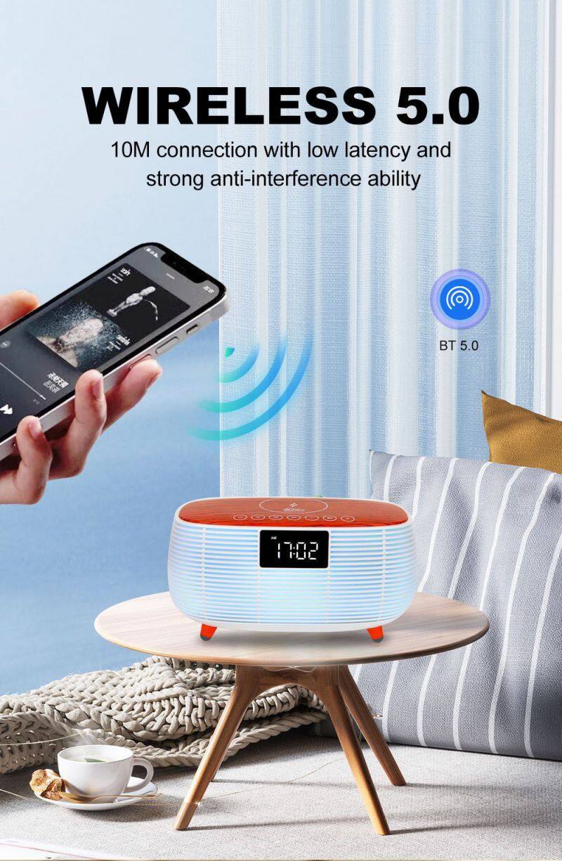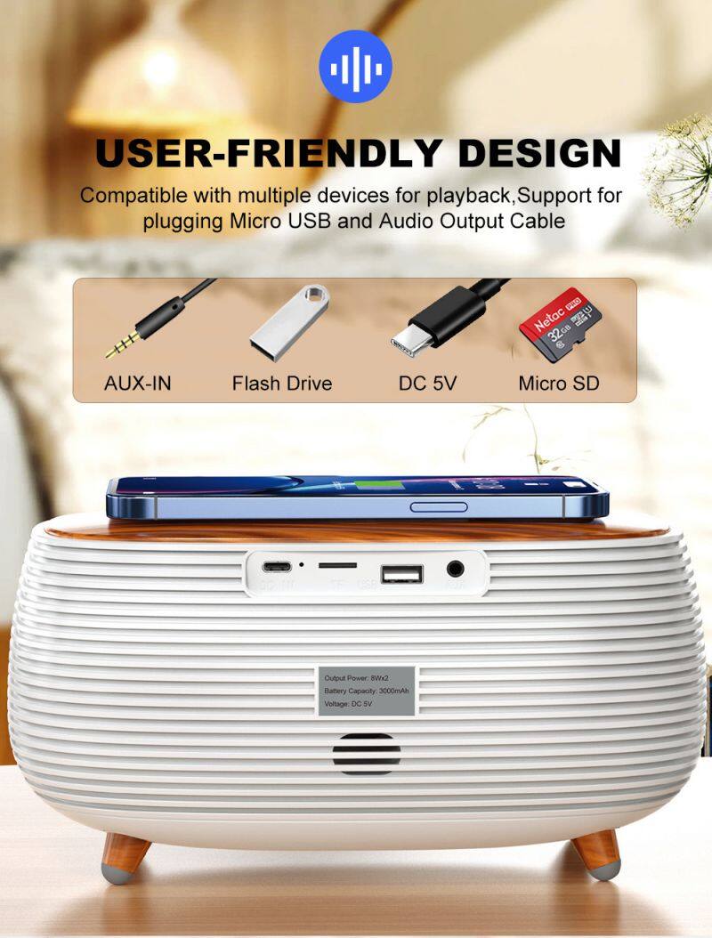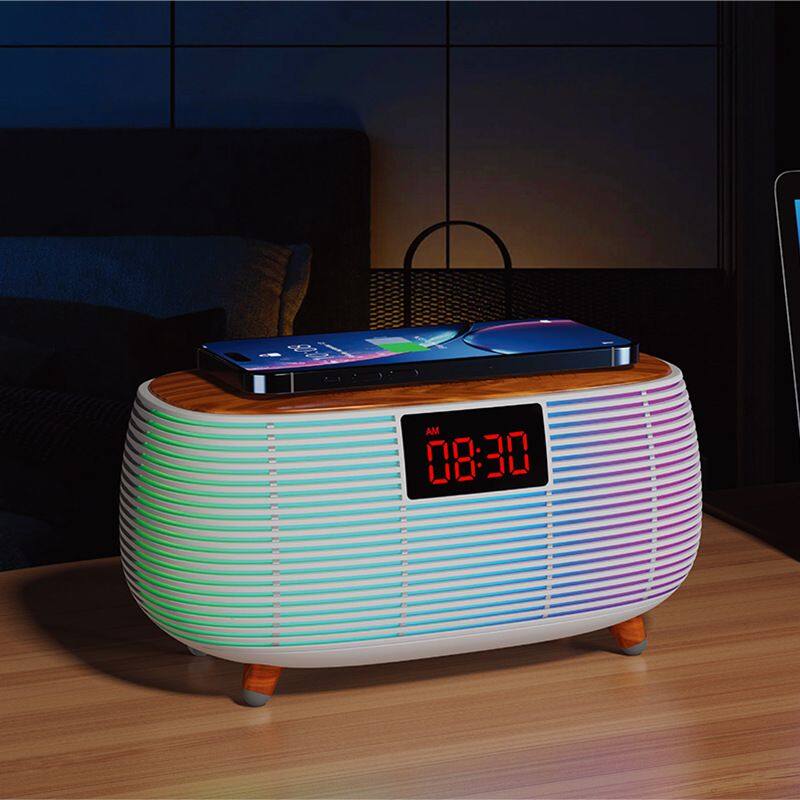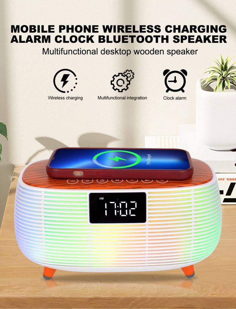 K1 Wood Bluetooth Speaker Alarm Clock Wireless Charger Speaker Multi-function Subwoofer for Computer Speakers
