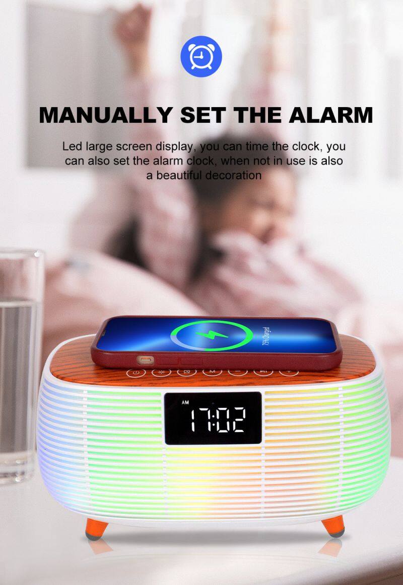 New HF18 Wireless Charging Speaker FM Radio LED Display Alarm Clock Multifunction Digital Alarm Clock Bluetooth Speaker 3 in 1