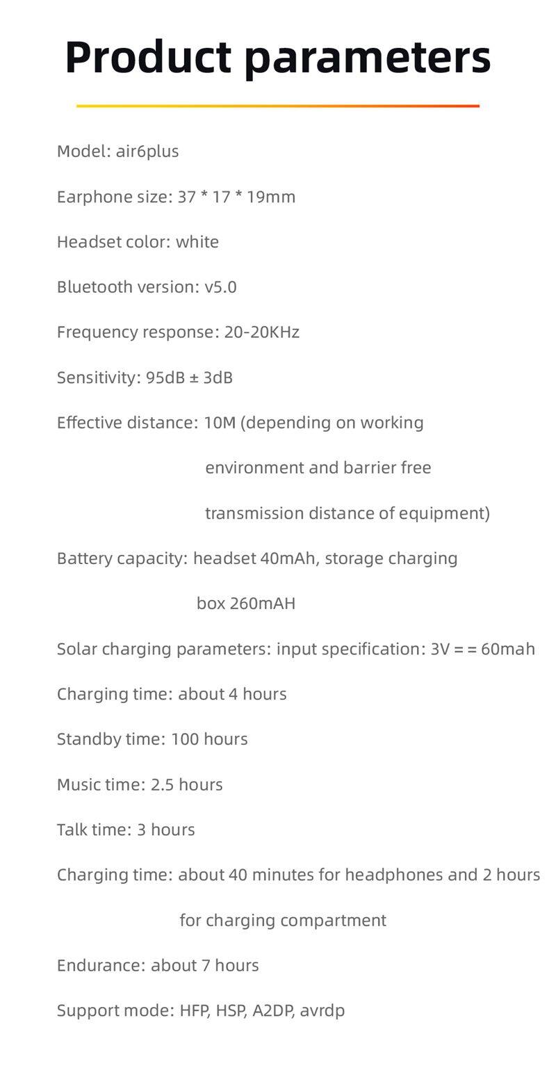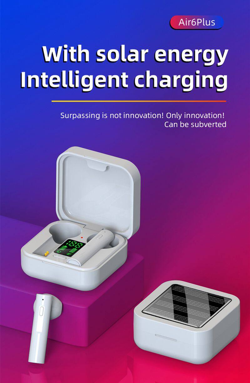 Solar Charging True Wireless TWS Earbuds Air6Plus Air6 Plus Earphone Headphone Handsfree Headset With Mic