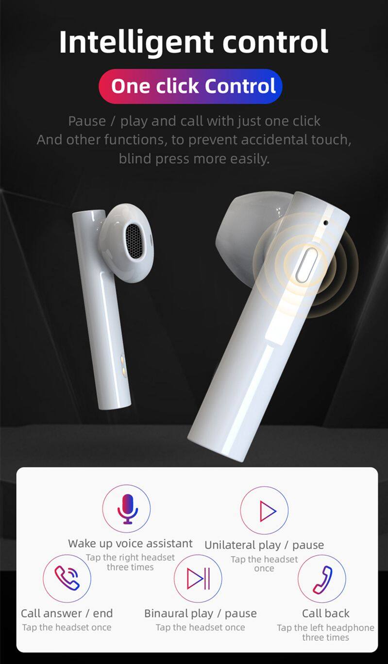 T28 Blue Tooth 5.0 TWS Earphone In-Ear Wireless Fingerprint Touch Earbuds Bass Stereo HiFi 8D Surround Music Headphones