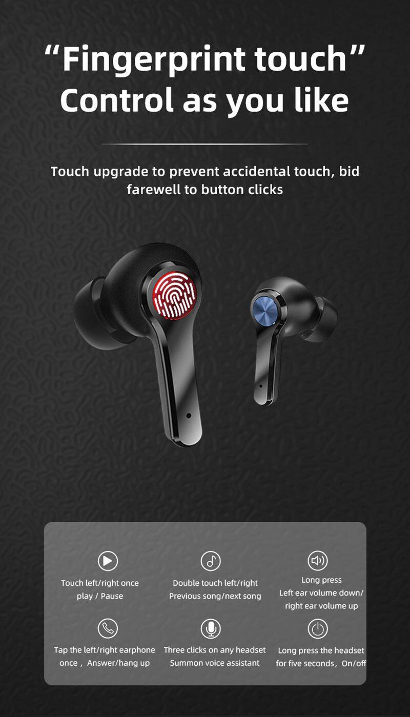 New C6 TWS HD Stereo Wireless Noise Cancelling Sport Game Sweatproof Fingerprint Touch Earphones