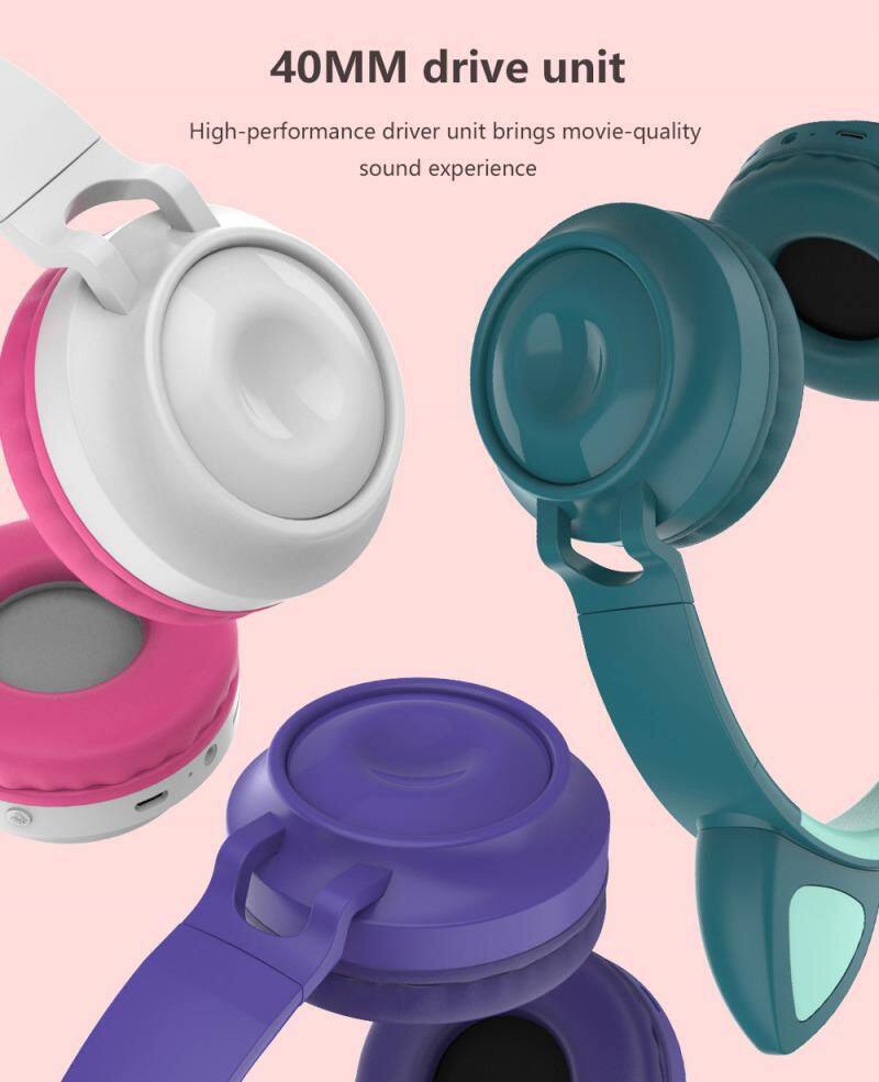 New Arrival Head-mounted Cute Wireless Headphone Children\'s Headset With Microphone LED Light Hearing Protection Earphone
