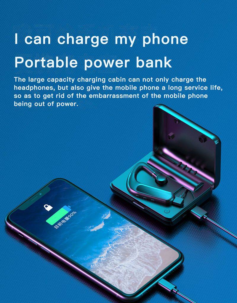 Drahtloser Kopfh?rer, kabellose Ohrh?rer, Handsfree-Ohrst?psel, Sport-Ohrh?rer mit Ohrclip, Gesch?ftseinkanal-Ohrh?rer mit Mikrofon, Ladeger?t, Powerbank