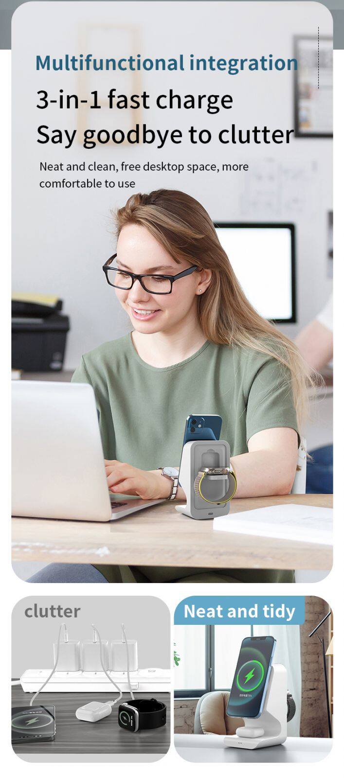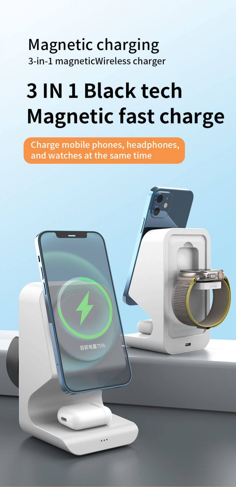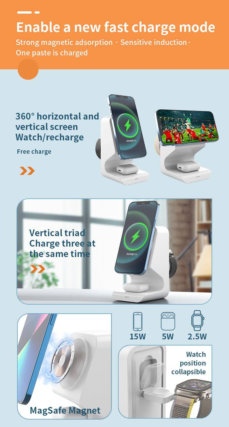 Wireless Charging Stand 3 In 1 Wireless Charger Phone Charging Station For Watch And Mobile Phone