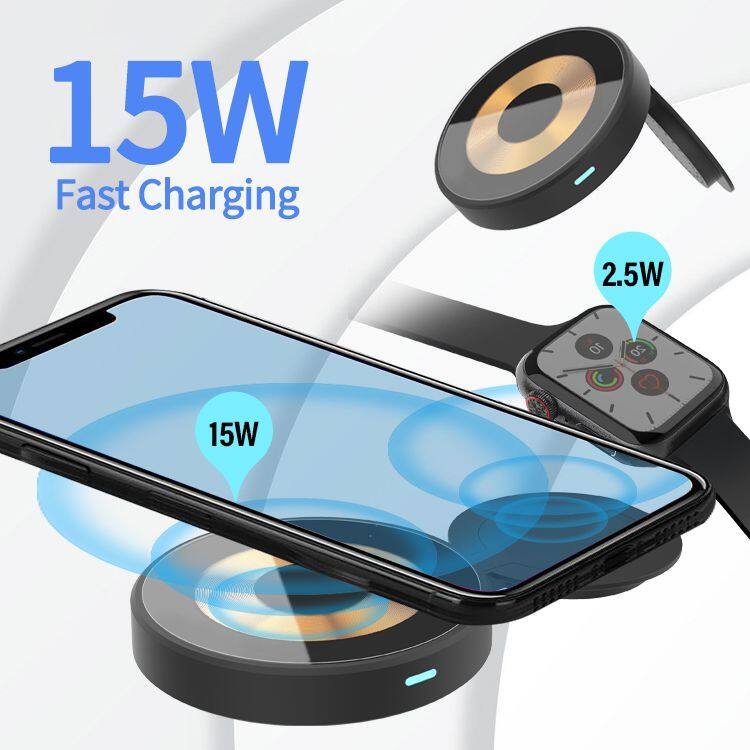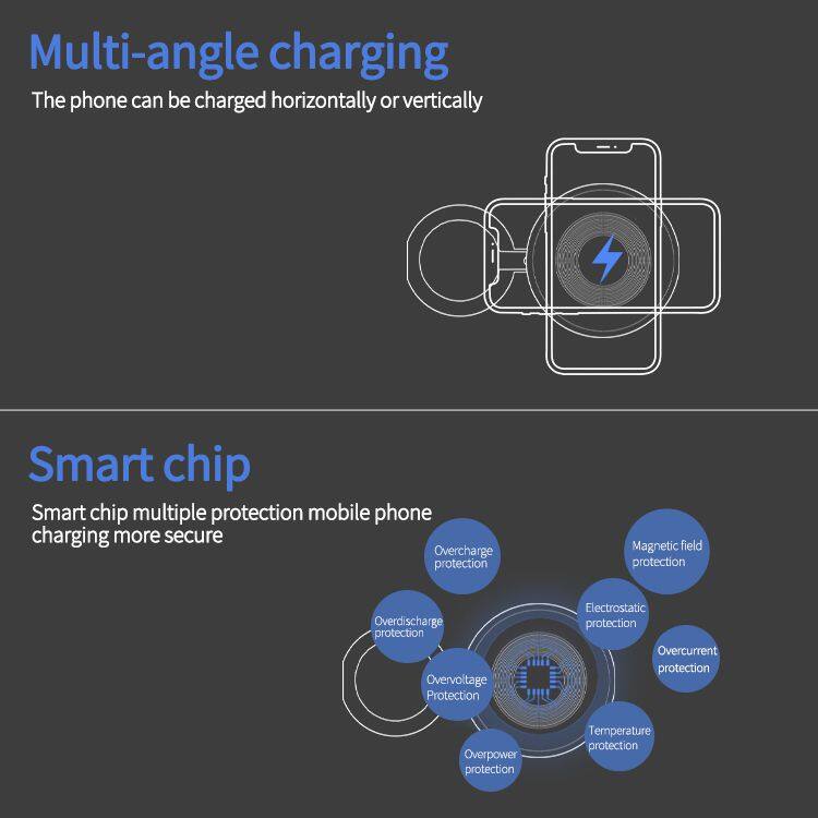 3 in 1 Multifunctional 15W Wireless Charger Dock Smart Matching Magnetic Adsorption Suitable for Cell Phone Watch for Air Pods