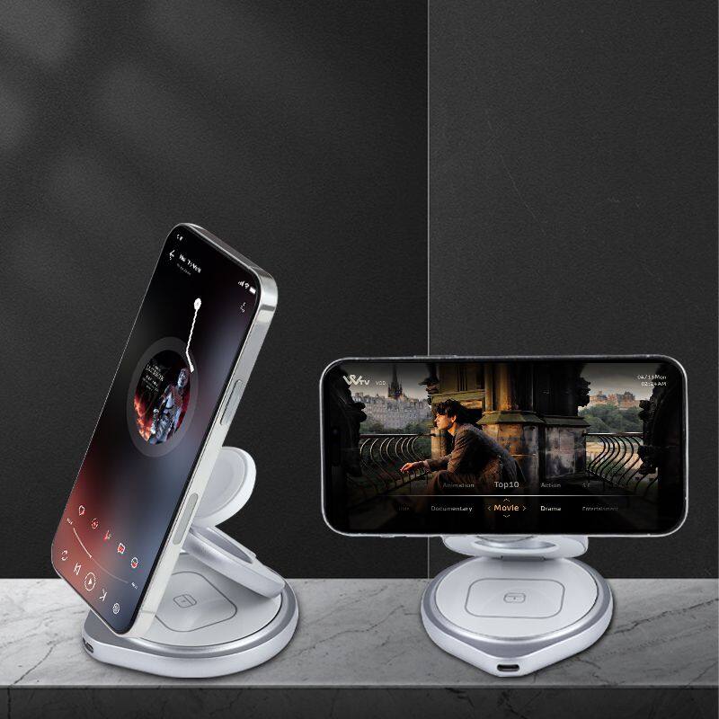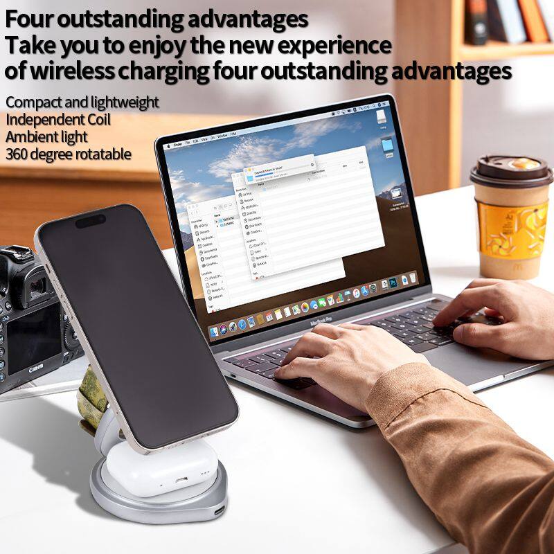 Earphones Wireless Charger 3 in 1 Foldable Plastic With Light Rotating 15W Charging Stand for Apple 12 13 14 15 Pro Max