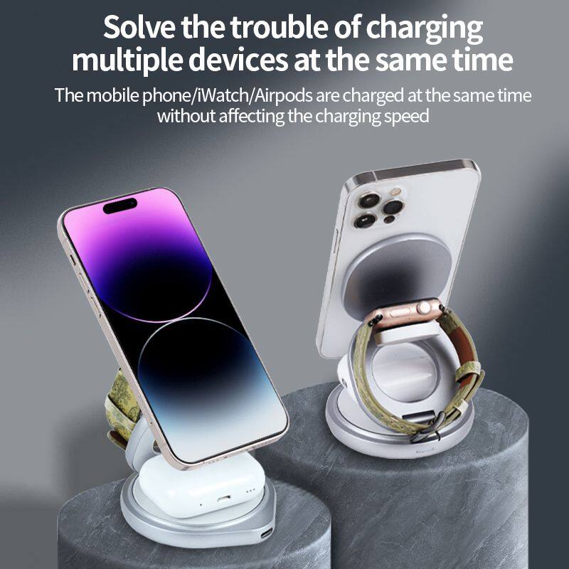 Magnetic Foldable Vertical 3 in 1 Wireless Charger Mobile Phone Magnetic Fast Charging Station for Apple 12 13 14 15 Pro Max