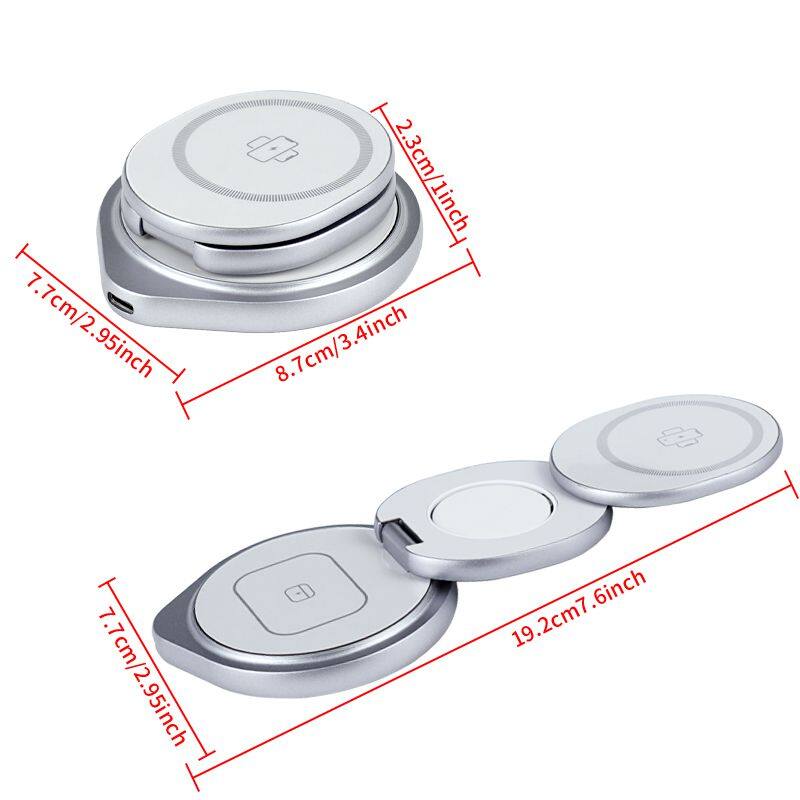 Magnetischer 3-in-1 faltbarer Funk-Ladeplatz aus Zinklegierung ohne Drehung für schnelles Laden für Apple 12 13 14 15 Pro Max