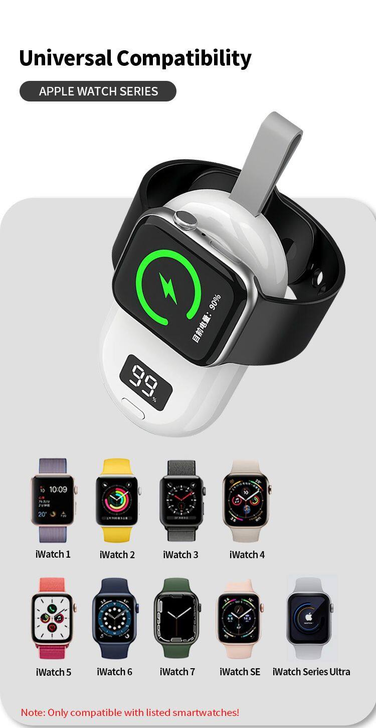 Portable Wireless Watch Charger Power Bank 2000mAh for A Watch 9 8 7 6 5 3 2 SE Keychain Small Mini Pocket Emergency Power Bank