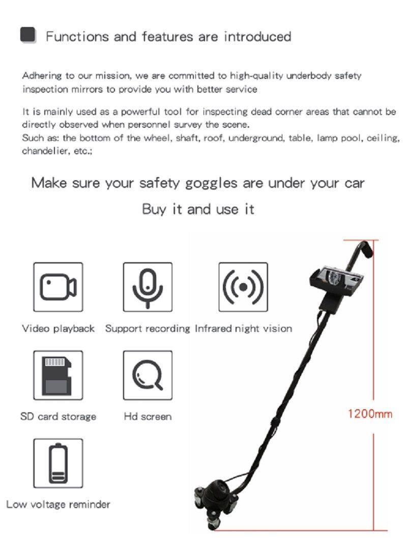 Startseite > Produkte > Industrieprodukt > Bildschirmdarstellung Spiegel zur Inspektion des Fahrzeugbodens