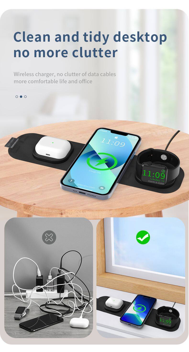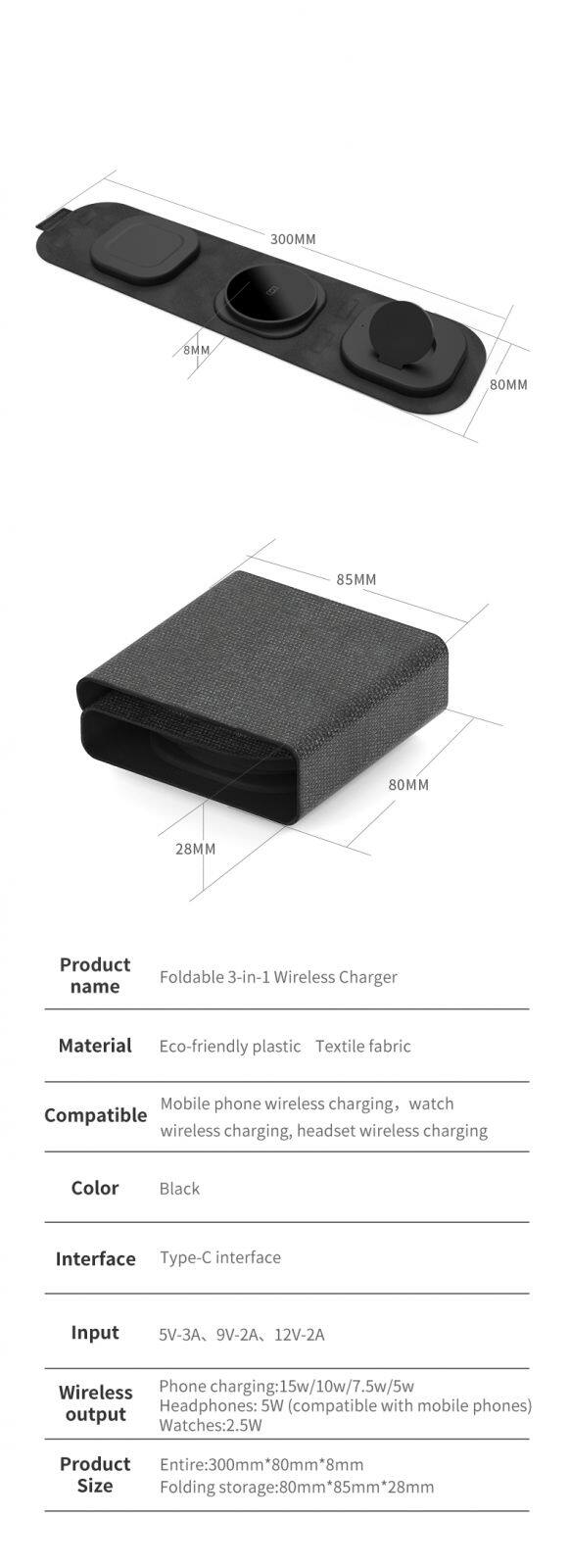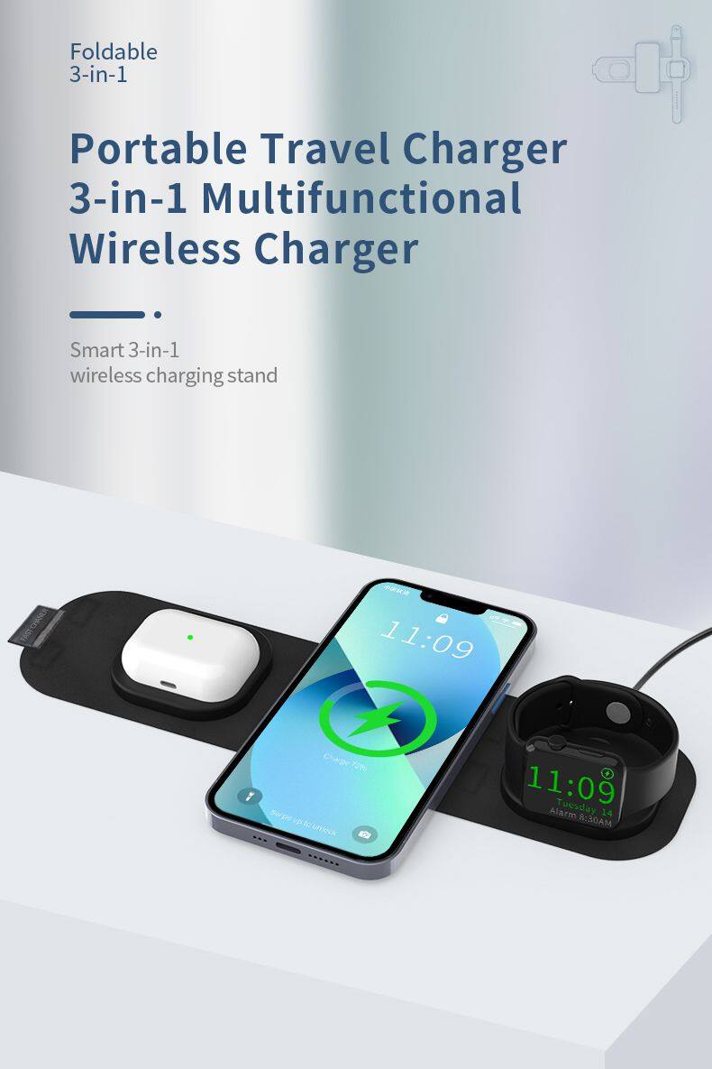 Portable 3 in 1 Wireless Charger for Phones Earphones Smart Watches Foldable Fabric Design