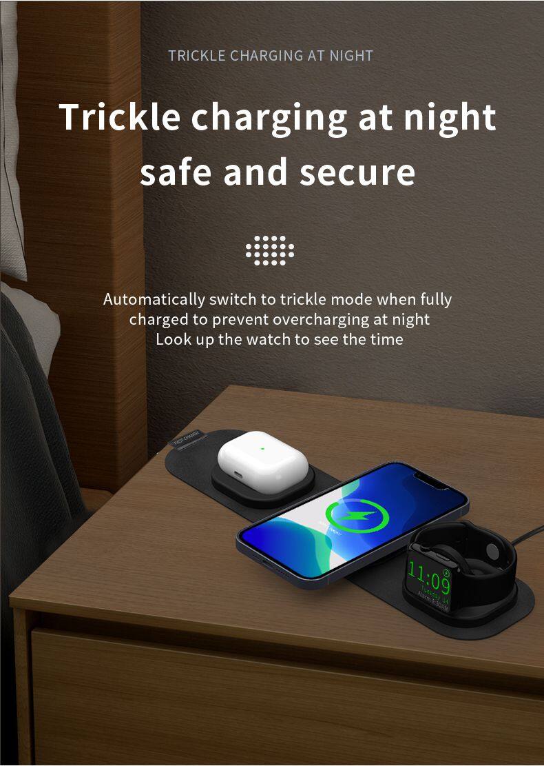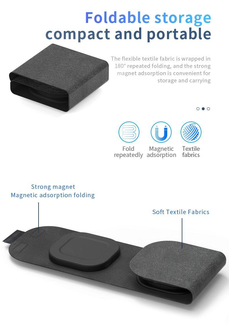 Portable 3 in 1 Wireless Magnetic Charger for Phones Earphones Smart Watches Foldable Fabric Design Charging Dock