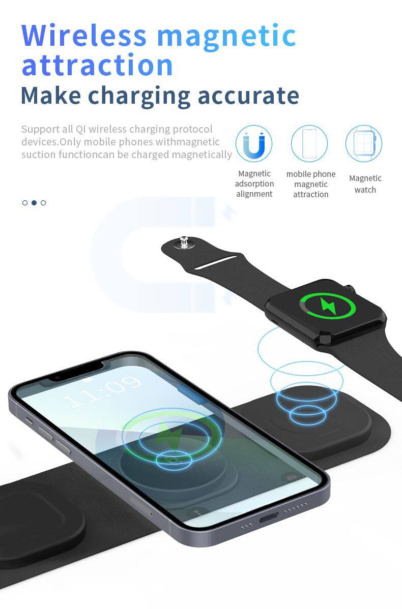 3 in 1 Wireless Charger Portable Travel Charger Station 3 in 1 Wireless Charging For Smart Phone Strong Magnetic Foldable