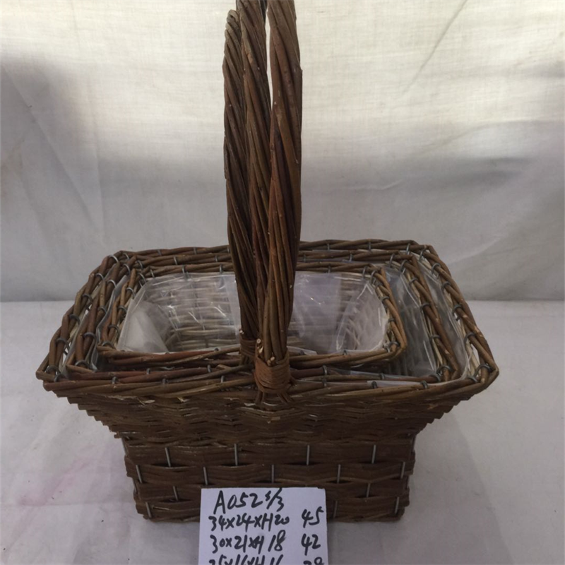 En venta caliente, canasta de flores de sauce para jardín de forma cuadrada