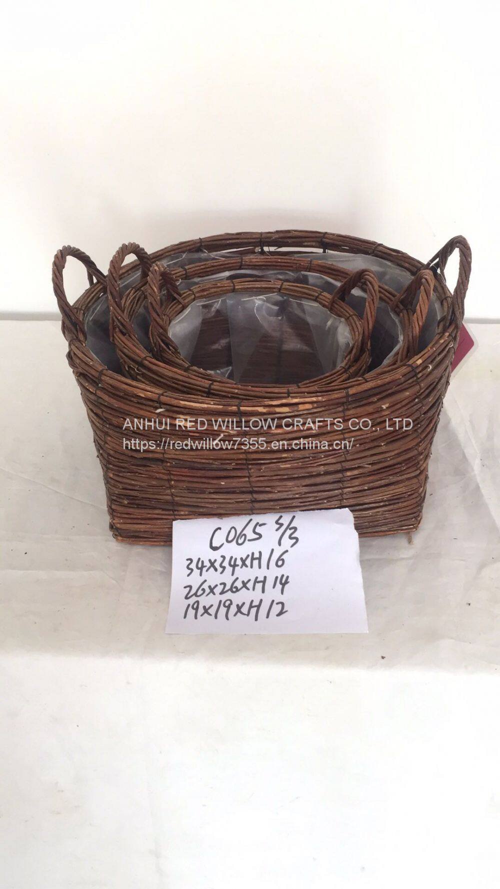 Nuevo dise?o de canasta de mimbre de sauce con asa de oreja y forro para plantas de flores