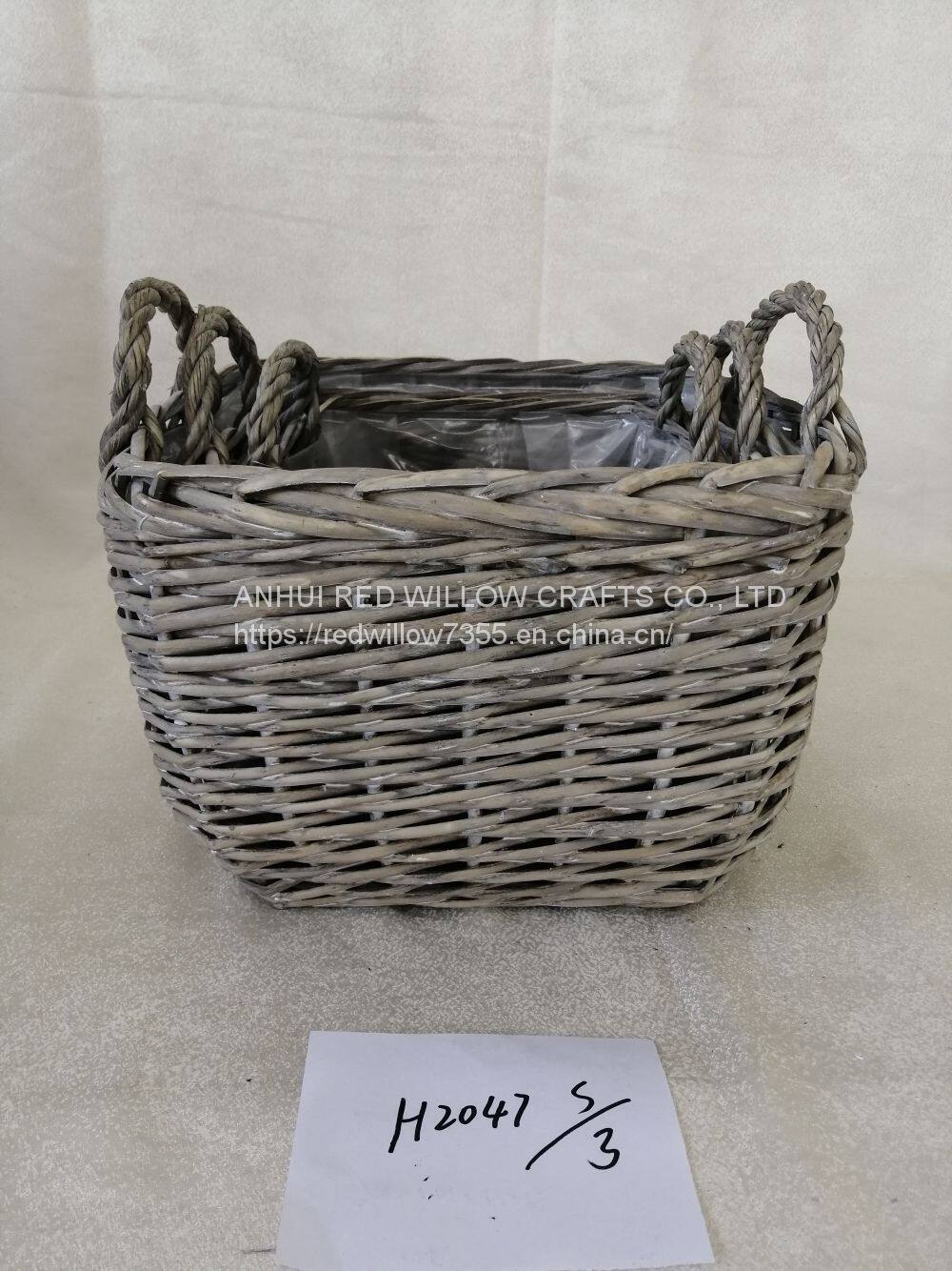 Baskets de mimbre gris hechos a mano de alta calidad, macetas de sauce, precio