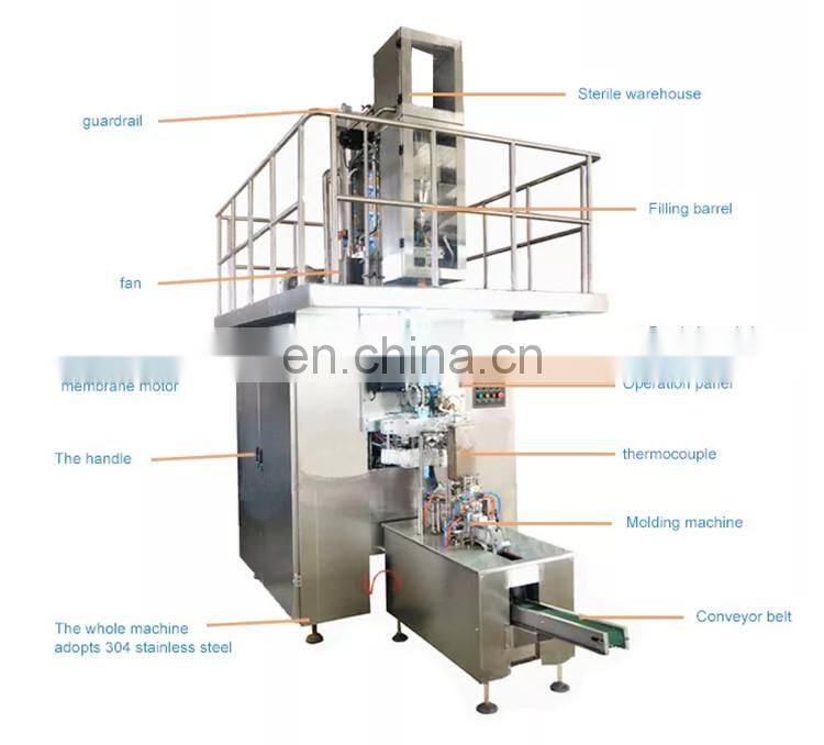 dentro de la máquina, dise?amos atomización de peróxido de hidrógeno y generador de ozono para un tratamiento de esterilización adicional. Finalmente, se utilizan rayos ultravioleta UV para una esterilización profunda y crear un entorno de llenado aséptico.