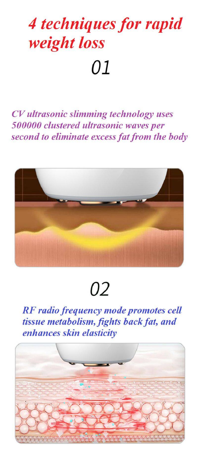 1. La tecnología de adelgazamiento ultrasónico CV utiliza 500000 ondas ultrasónicas agrupadas por segundo para eliminar el exceso de grasa del cuerpo.