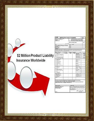 * Certificados de seguro de responsabilidad civil de productos por US$2,000,000 para calidad, seguridad y medio ambiente