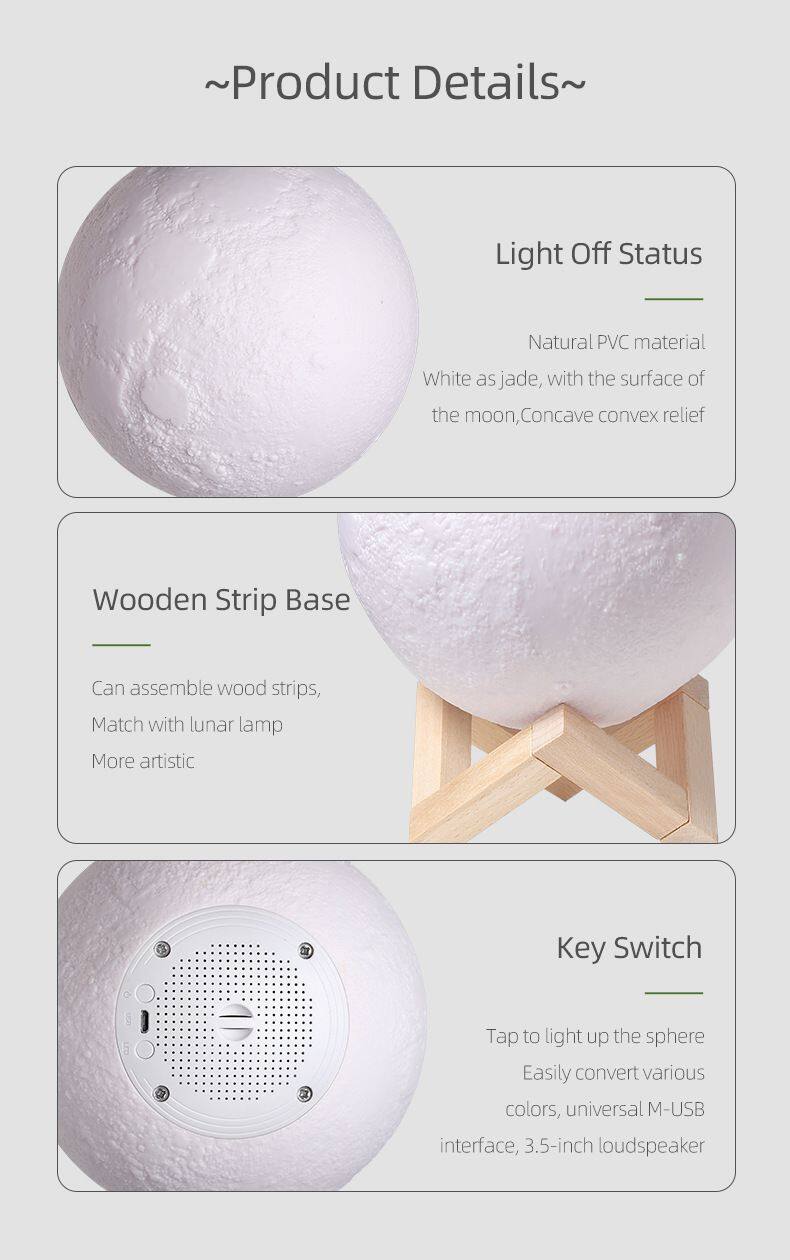 Nombre del producto | Popular soporte de madera, control remoto táctil, lámpara de luna nocturna recargable, lámpara lunar en forma de bola redonda, altavoz inalámbrico de música para el beside |