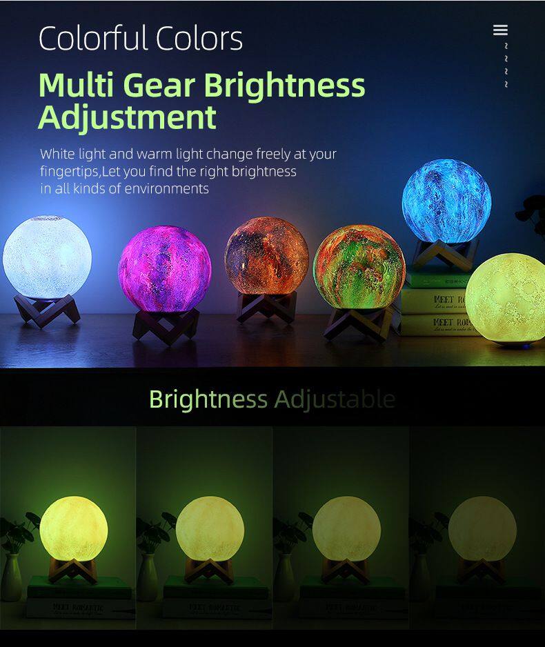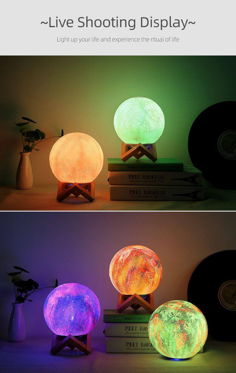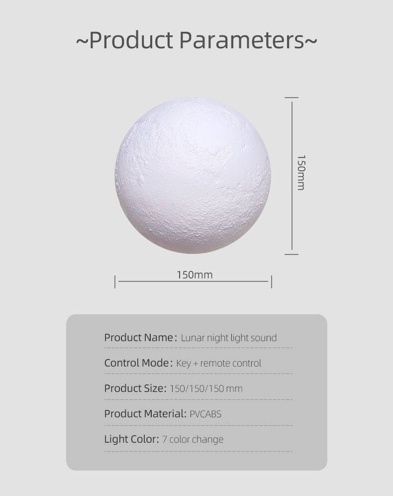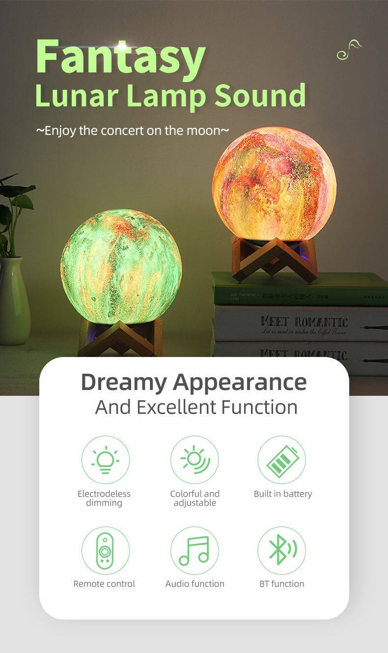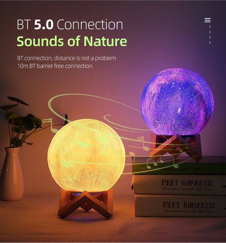 New Arrival Best Sellers Portable Wireless Speaker 7 Colors LED Light 3D Moon Light Bluetooth Speaker for Sleep