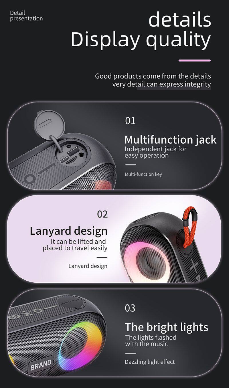 2024 Hot Selling Subwoofer 360 Degree Stereo Surround Sound IPX5 Waterproof Portable Wireless Bluetooth Speaker With Lanyard