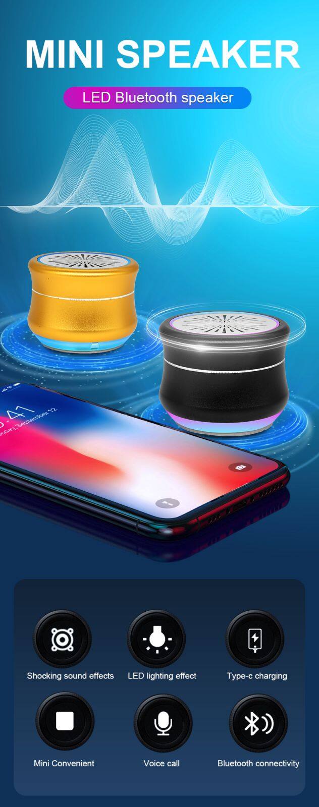 New Arrival Fashion Rechargeable Outside Wireless Waterproof Portable Mobile Music Mini Bluetooth Speaker With LED Light