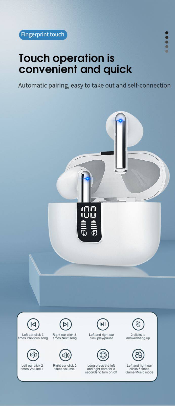 New Arrival Bluetooth Wireless Earbuds 5.3 Headphones ENC Smart Touch Control Type-C Wireless Bluetooth Earphones