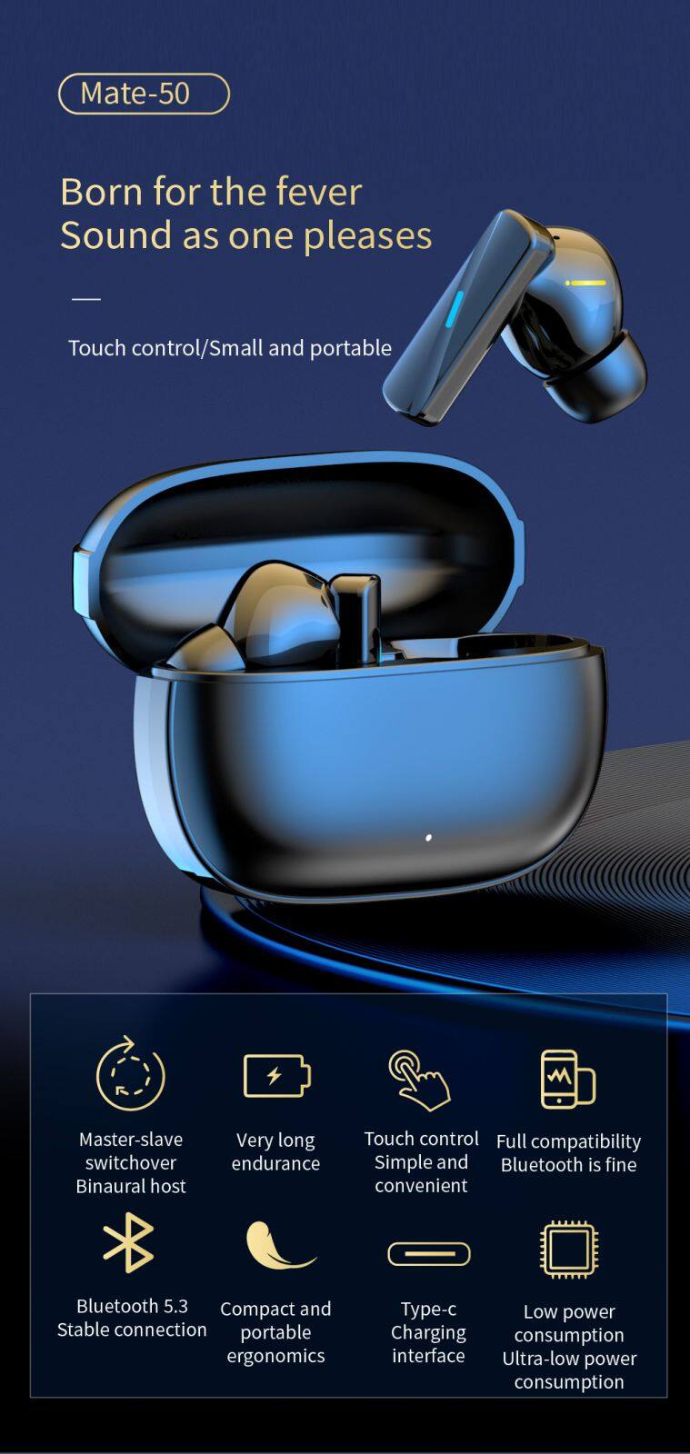 New Products Led Full Touch Screen Waterproof Anc Enc Intelligent Noise Reduction Noise Cancelling Earbud In-Ear Headphones