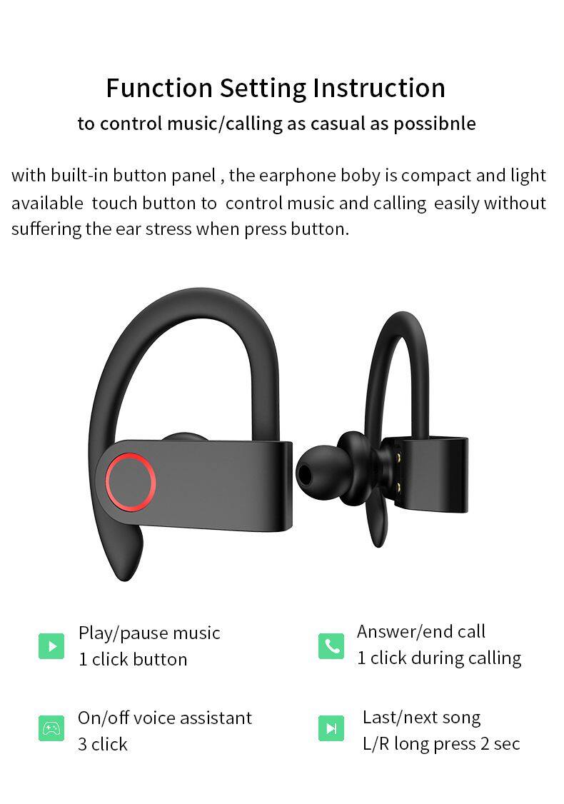 TWS Wireless Bluetoth Earphone Sports Headset Dual Single Ear Earhook In-Ear Bluetoh Portable Headset Earphones