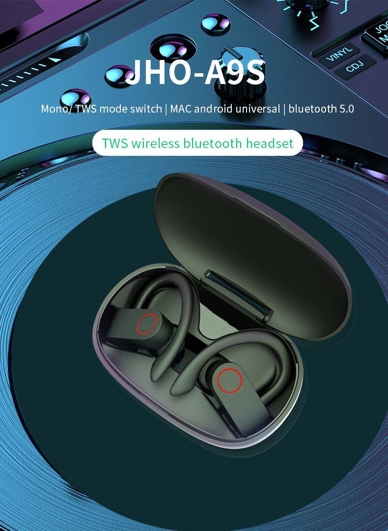 2021 Estilo de auricular con gancho 5.0 TWS Vero Estéreo Auriculares con gancho A9S Auriculares inalámbricos Auriculares de doble gancho para el deporte y la música