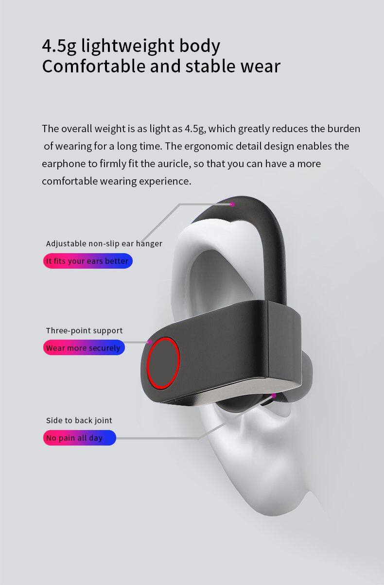 Bone Conduction Headphones BT5.0 Wireless Wear Open Ear Hook Light Weight Sports Earphone