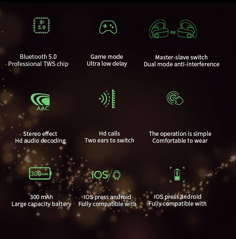 Sports Headset Gaming Music Stereo TWS Wireless Bluetoth Headset