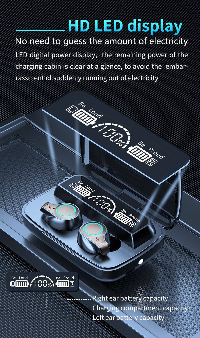 Wholesale M16 Large-screen LED Digital Display Earbuds Headphone Mobile Phone Waterproof Travel Tws Wireless Earphone