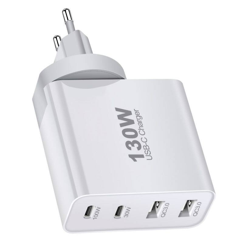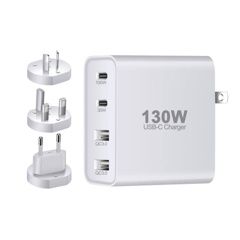 > > Otros > Cargador de pared USB C de 130W plegable para viajar, cargador de bloque de 4 Type C PD 3.0, cargador rápido, adaptador de corriente para el escritorio, estación de carga