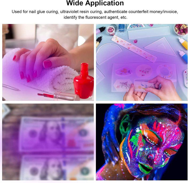 Aplicación | Verificar la autenticidad de los billetes, reparar teléfonos móviles o computadoras, Detección de agentes fluorescentes, Lámpara para manicura |