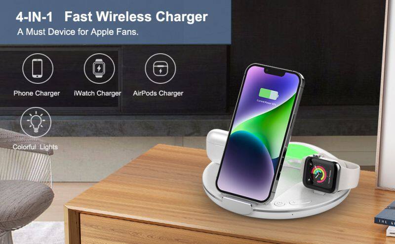Portable Multifunction Table Charging 4 In 1 Wireless Faster Charger For Iphone 14 13 12 Pro Max
