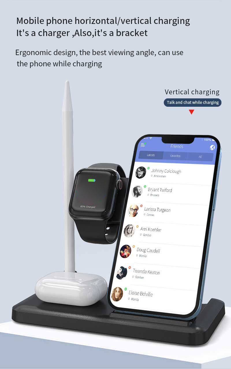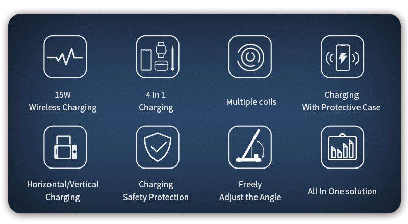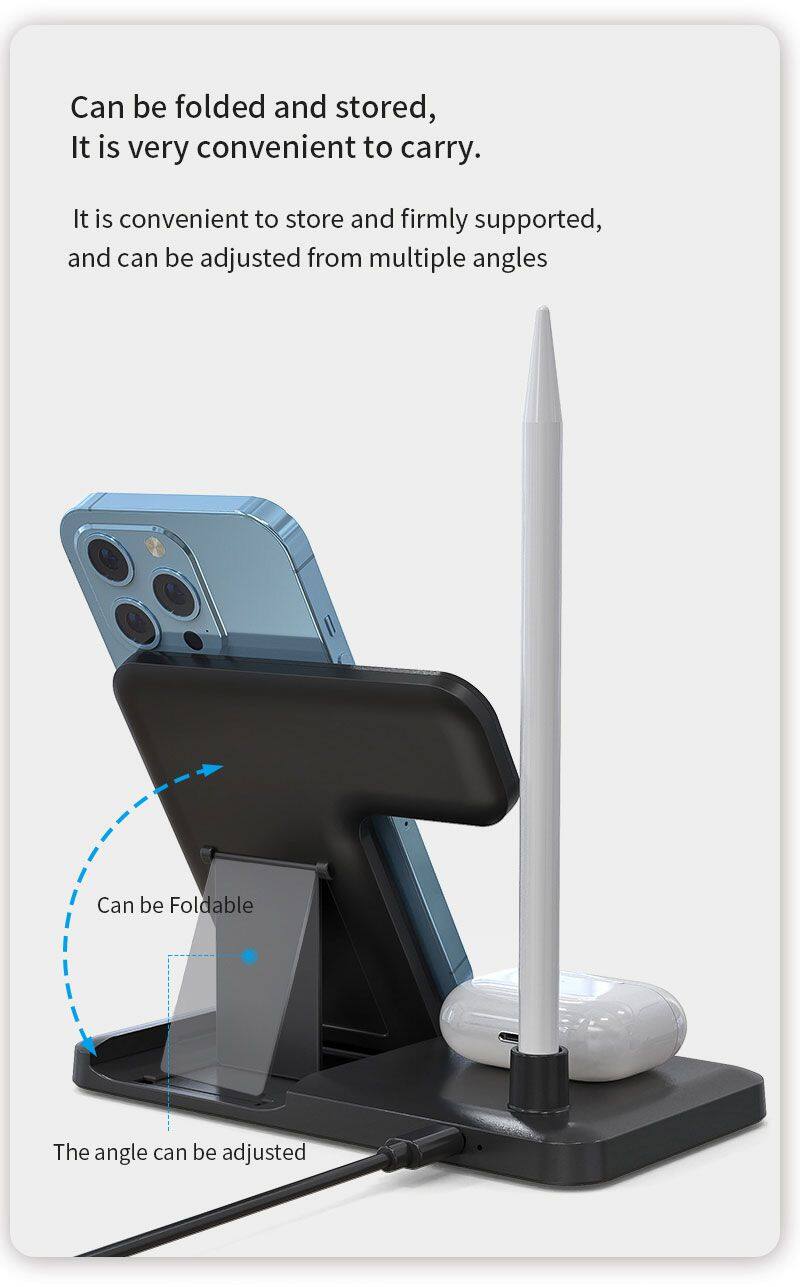 > > Otros > Cargador inalámbrico plegable delgado de carga rápida de 15W multifuncional 4 en 1 para Apple Pencil