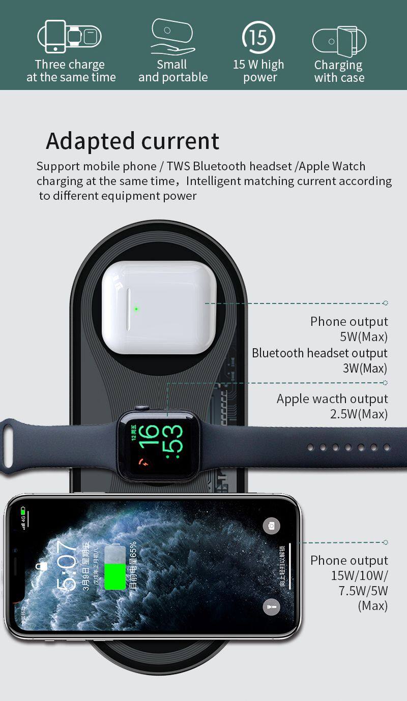 Universal Phone Charger 3 In 1 15W Wireless Charging Pad For Airpods 2/Pro And Apple Watch Series