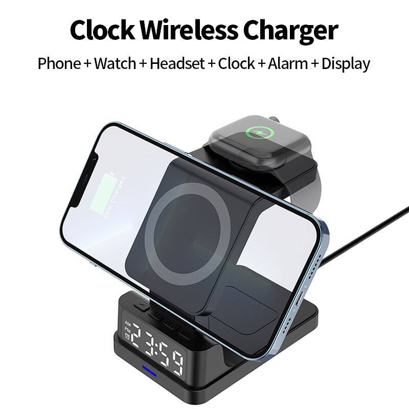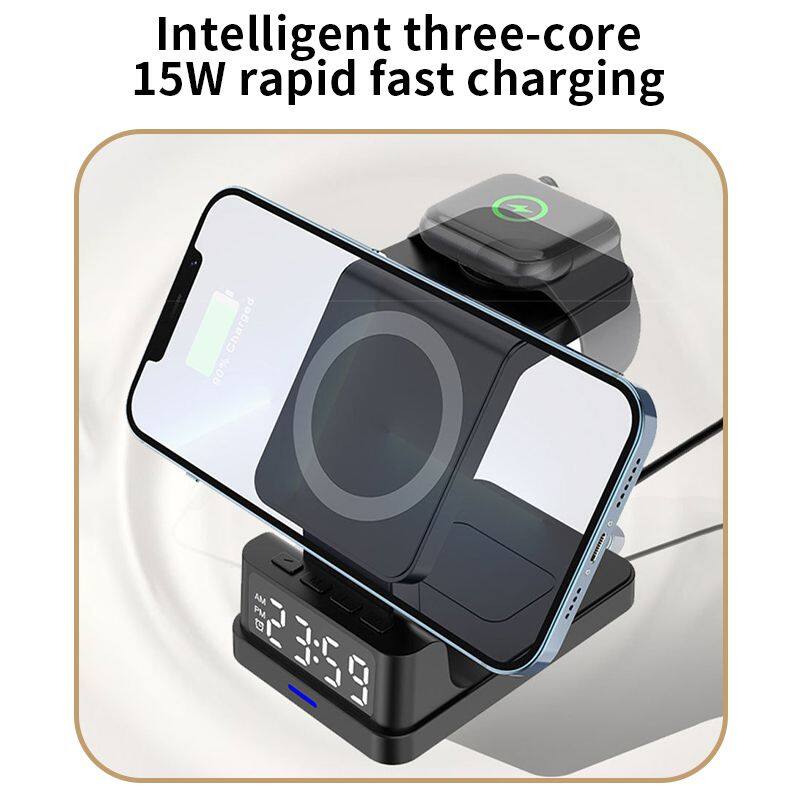 15W Multifunctional Wireless Charging Station, Magnetic Mobile Phone Charging Holder, With LED Digital Display Alarm Clock