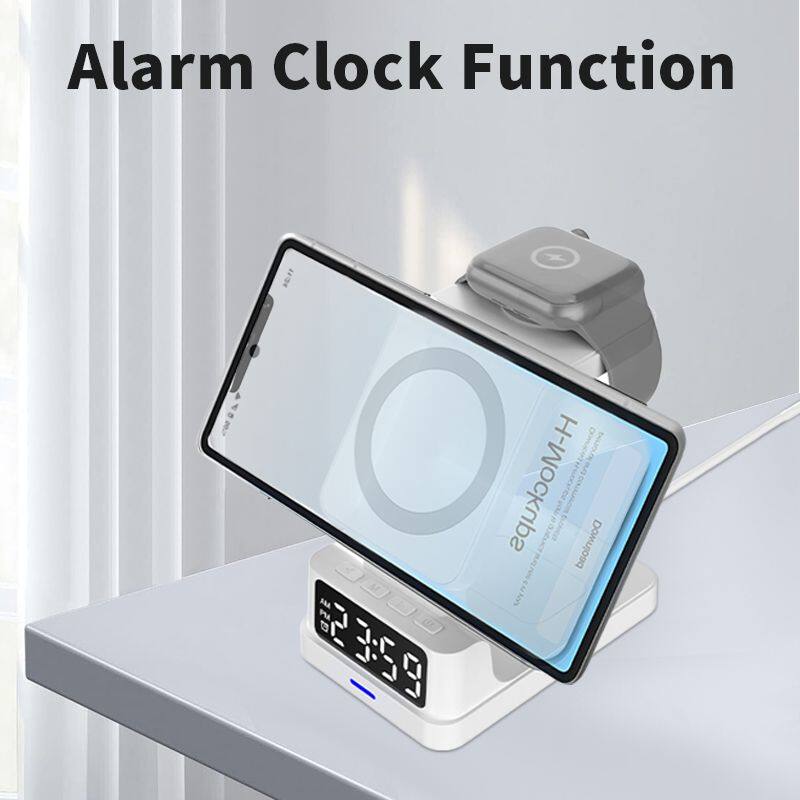 15W Multifunctional Wireless Mobile Phone Charger, Mobile Phone Wireless Charging Station, Alarm Clock Speaker, Digital Display