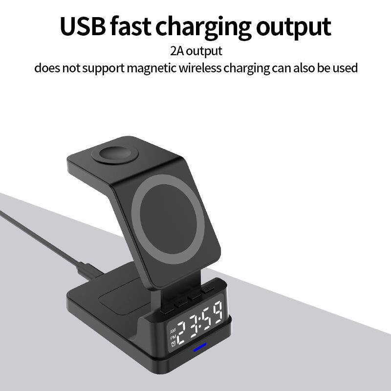 > > Otros > Estación de carga inalámbrica multifuncional de 15w 4 en 1, reloj de pantalla digital LED, cargador inalámbrico y soporte magnético para teléfono móvil
