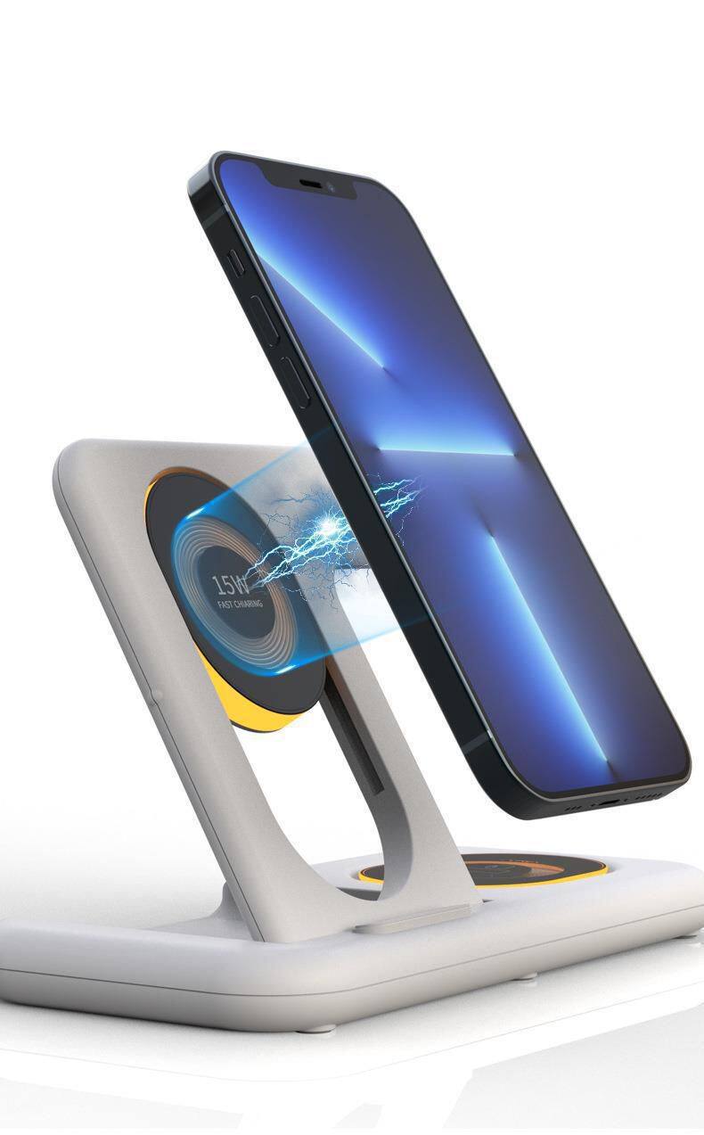 Wireless Fast Charger 360 Degrees Foldable Rotating 3 in 1 Magnetic Phone Charging Stand Foldable for Cell Phone