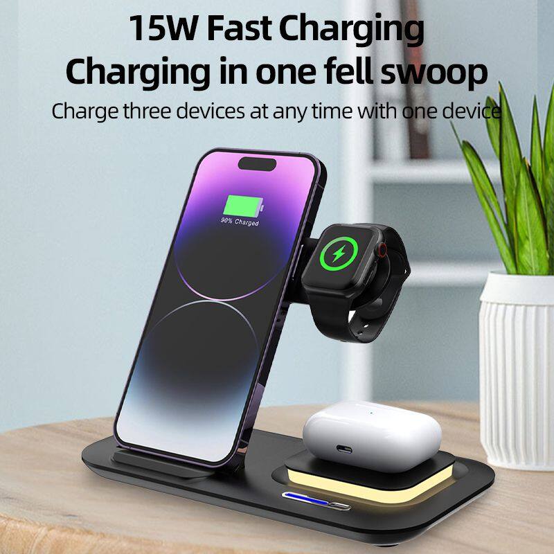 Wireless Fast Charger 3 in 1 Vertical Multi-Function 15W 3 in 1 Magnetic Charging Station for Function
